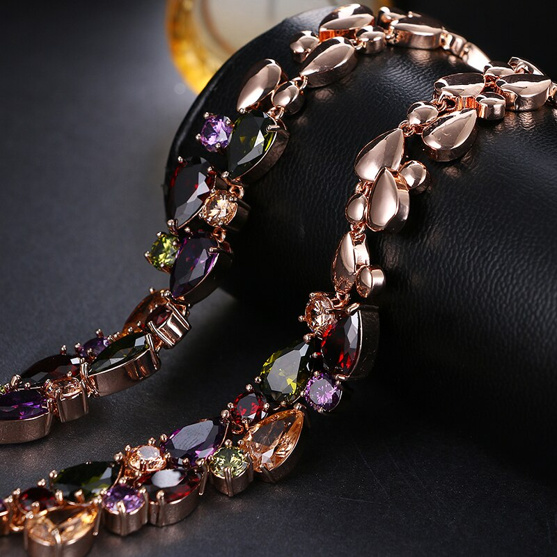 Banhado a ouro 18k em alta temperatura de 1000 graus e, em seguida, embutidos à mão com zircão AAA por nossos artesãos. A cor de cada peça é cintilante e duradoura, mostrando um estilo de luxo moderno e clássico.